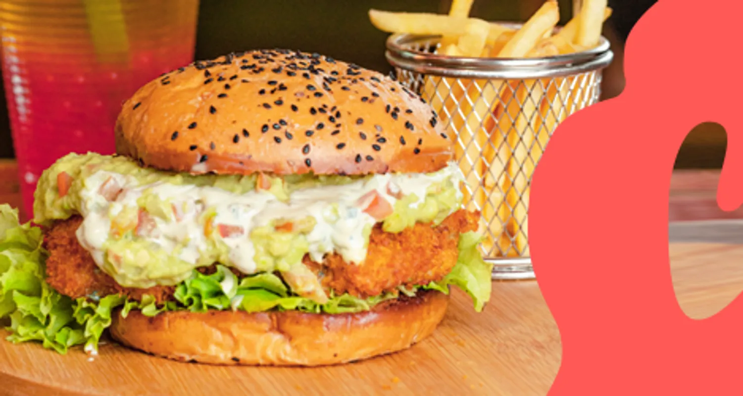 3 Burguer con cebolla caramelizada y queso cheddar, 5 alitas en salsa BBQ, Papas fritas con queso cheddar y tocino.